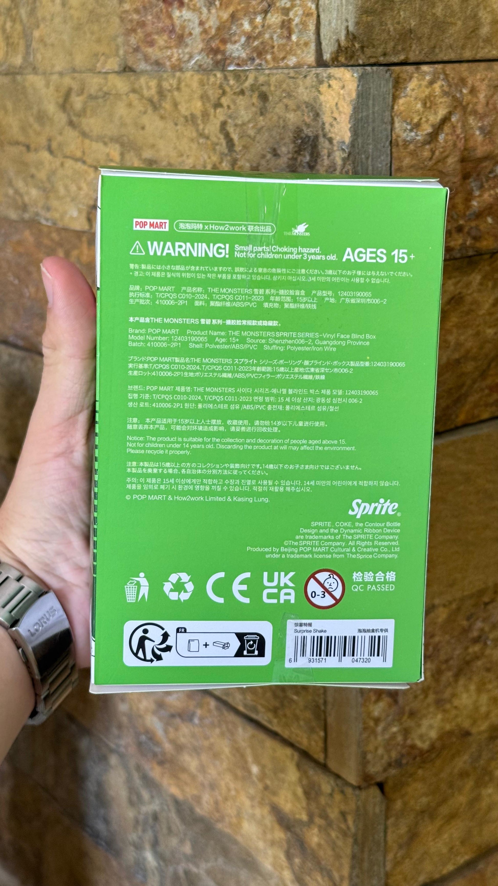 Chegou mais uma peça imperdível da colecção The Monsters,desta vez em parceria com a refrescante Sprite! A figura inspirada no dupe do adorável Labubu surge com detalhes em verde e uma garrafa de Sprite nas mãos, pronta para animar qualquer colecção.
